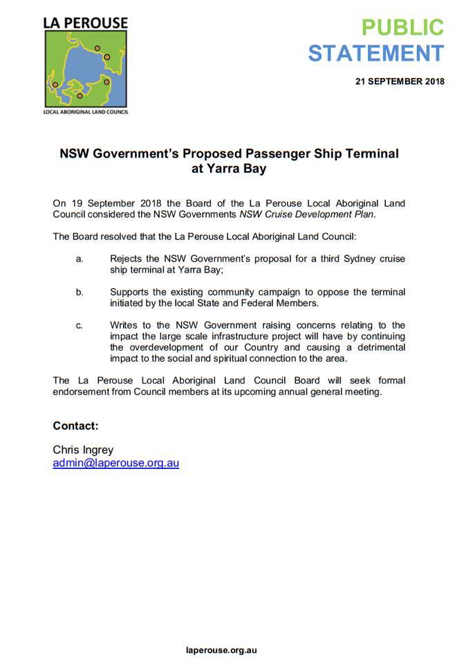 Public statement, La Perouse Local Aboriginal Land Council